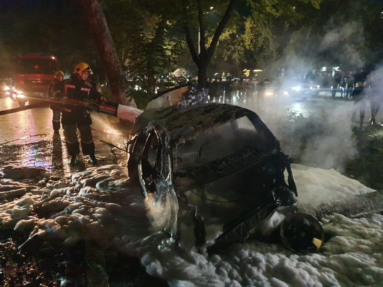 Toshkentda “Cobalt” bilan toʻqnashgan “Lacetti” yonib ketdi