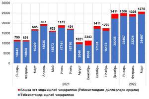 06:32 12 Апрель 2022Шу билан бирга, жорий йилнинг февраль ойига нисбатан 12,7 фоизга пасайиш кузатилди.