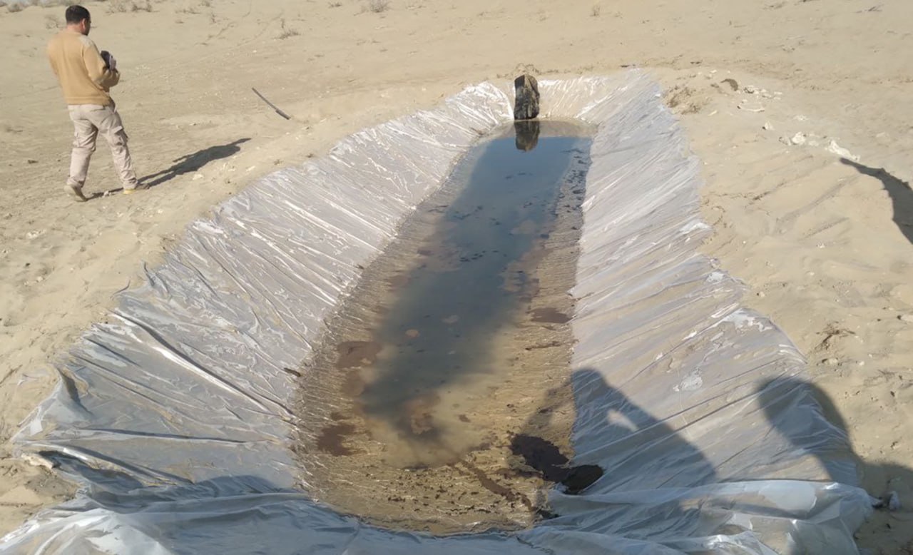 Ўтказилган тезкор тадбирда қувурдан тахминан 600 метр узоқликда қумга кўмилган резина шланг ҳамда полиэтилен плёнка билан қопланган, ўлчами 2х4 метр кавланган чуқур аниқланди.