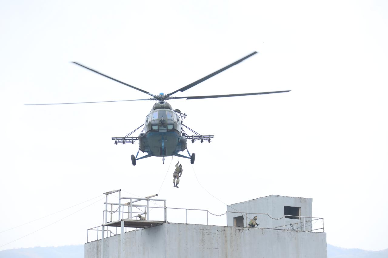 Ўқув машғулоти давомида шунингдек, шартли аэропортда ноқонуний қуролланган тузилмани қуршаб олиш ва йўқ қилиш, самолётдаги асирларни озод этиш вазифалари ҳам бажарилди.