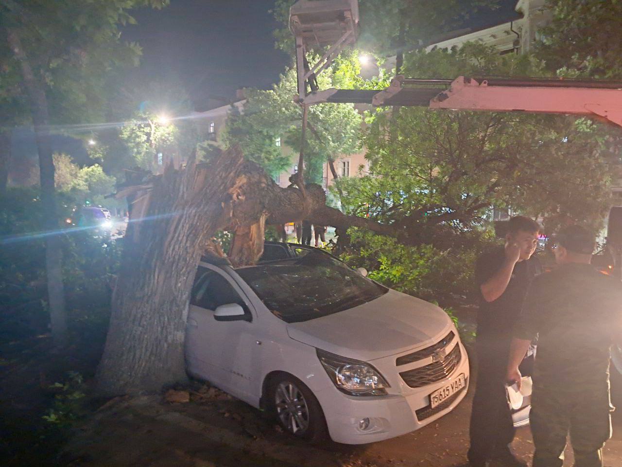 Унга кўра, Иккита «Cobalt» русумли машинани кучли шамол натижасида синиб кетган дарахт босиб қолган. Ҳодиса жойида туман ободонлаштириш бошқармаси ходимлари иш олиб боришмоқда.