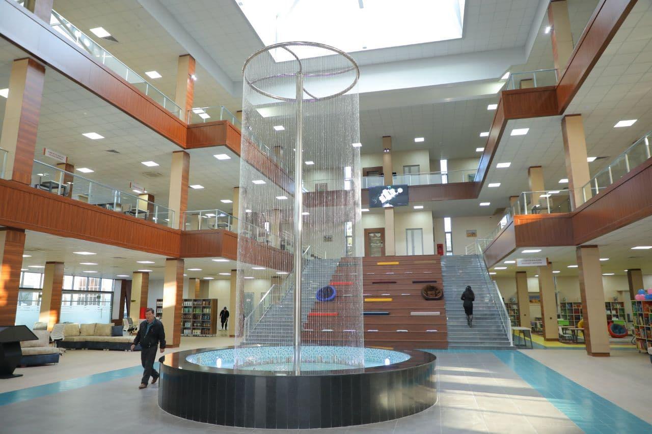 Туркиянинг “UG Inshaat” масъулияти чекланган жамияти томонидан тайёрланган лойиҳа асосида қад ростлаган уч қаватли бинонинг умумий майдони 5220 кв. метрни ташкил этади. У мутолаа ва адабиётларни олиш бўлимлари, китоблар архиви ва фонд сақлаш учун мўлжалланган махсус ертўладан иборат. Кутубхона бир вақтнинг ўзида 1200 кишига хизмат кўрсата олади.
