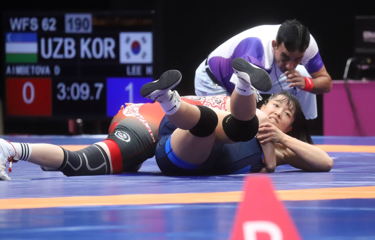 Шунингдек, аёллар кураши дастурида Дилфуза Аимбетова (-62 кг) ҳам биринчи беллашувини муваффақиятли ўтказиб, чорак финалга йўл олишди.