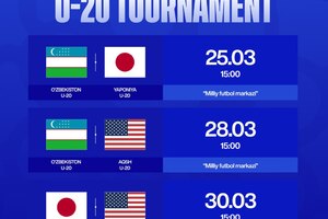 12:50 01.03.2026Ўйинлар Миллий футбол марказида бўлиб ўтади.